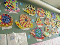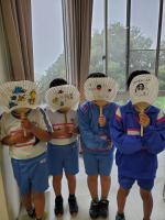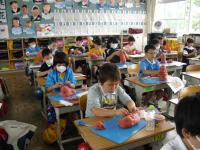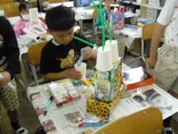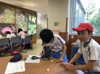 雨のためカヌーは中止。午後からはうちわ作りをしました。