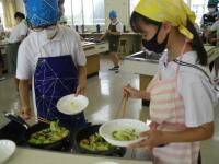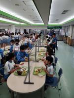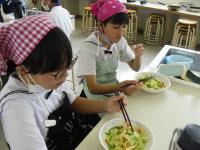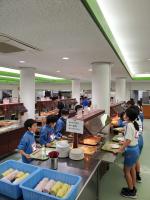 1日活動してみんなお腹がペコペコ。夕食はビュッフェスタイルです。栄養バランスを考え、食べるものを選びました。