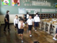【1年生の様子】音楽で、ピアノに合わせて、体を動かしました。