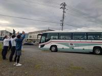 出発式のあとバスまで移動し、朝早くから来ていただいたたくさんの保護者や先生方に見送られながら出発しました。