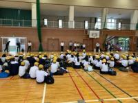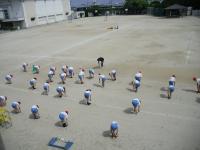 【1年生の様子】長座体前屈やシャトルランをしました。