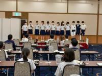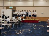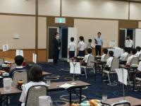 代表の児童が、今日の夜から明日の朝までの時間をお世話になるホテルの方にお願いしますと伝えました。