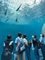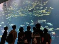 展示の工夫もあり、下から魚を見上げて楽しんでいました。