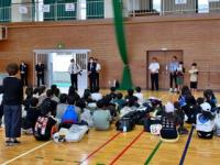 校長先生から気をつけることを聞いたり、代表児童が修学旅行に向けての楽しみを発表したりしました。