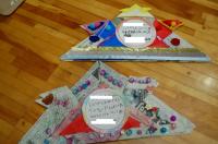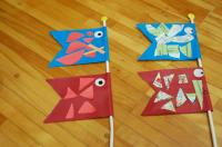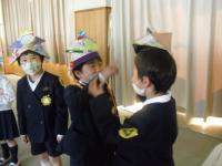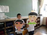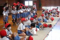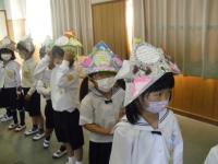 【1年生の様子】5年生から、かぶとをプレゼントしてもらいました。