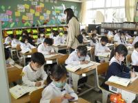 【3年生の様子】国語で、大事なことを聞き取りながらメモをしました。