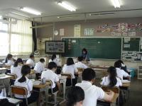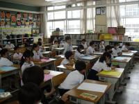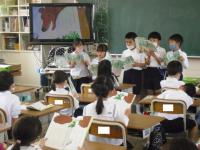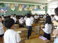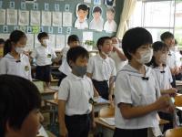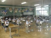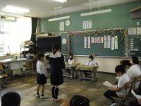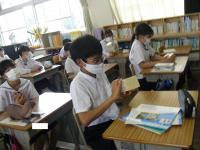 今日は、JRC登録式、5年生自然教室説明会、6年生修学旅行説明会、1年生のそらまめの皮むきとたくさんの行事がありました。