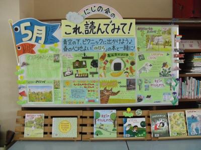 学校図書ボランティア「おはなしにじの会」のみなさんが、図書室に楽しい掲示をしてくださいました。