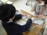 【2年生の様子】算数で、竹ものさしを使って長さを測りました。