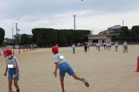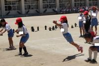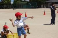【4年生の様子】体育で、ソフトボール投げをしました。