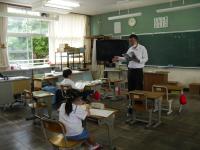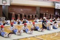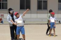 1、2年生とひまわり学級の子ども達が新体力テストを行いました。1年生には6年生、2年生には5年生がお手伝いについてくれました。