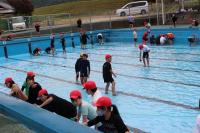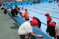 来月からの水泳授業に向けて6年生がプール掃除を行いました。