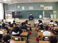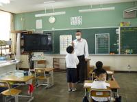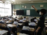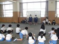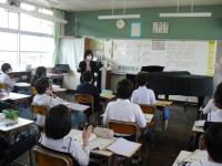 【2年生の様子】音楽で、先生の演奏したリズムを山びこのようにくり返しました。