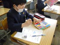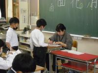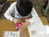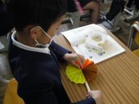 【4年生の様子】算数で、おりがみと割りばしを使って、角度について学習しました。