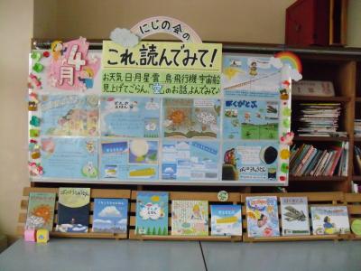 学校図書ボランティア「おはなしにじの会」のみなさんが、図書室に楽しい掲示をしてくださいました。
