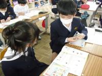 【1年生の様子】生活科で、あさがおの種を観察しました。