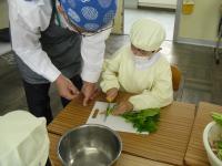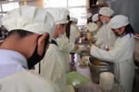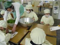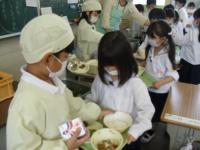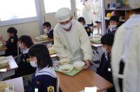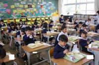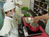 担任の先生は「自分の担当の献立がどの食器につぐのか、しっかり見ておいてね。」と声かけをしています。