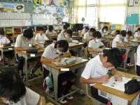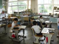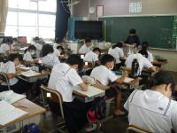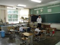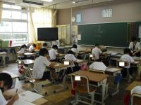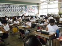 【学級活動の様子】終業式の後は、各学級で、通信簿をもらったり、夏休みの生活の話を聞いたり、教室の片付けをしたりしました。