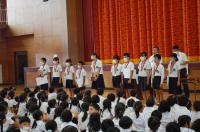 1年生と4年生とひまわり学級の代表児童が、1学期の反省と夏休みにがんばりたいことを発表しました。
